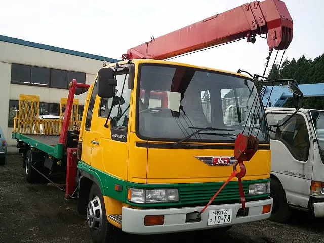 事故や故障などで動かせないケースにも積載車(セーフティローダー)でしっかりと対応いたします。ユニック付きなので、色々な状況にも対応いたします。