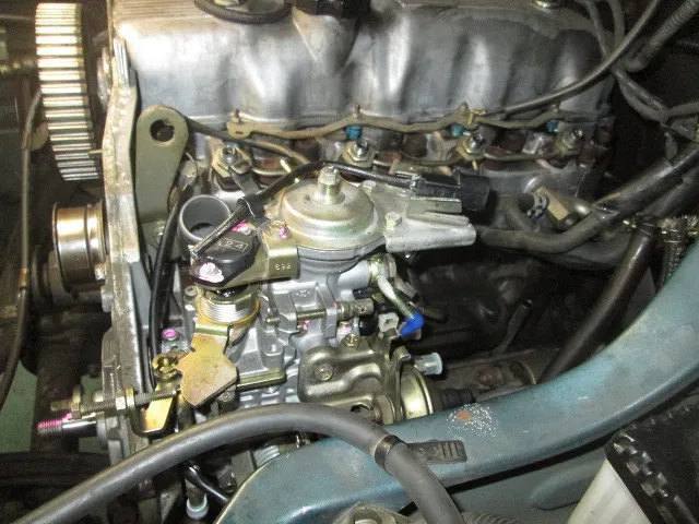 噴射ポンプをリビルト品と交換するために、タイミングベルトを外してある写真です。