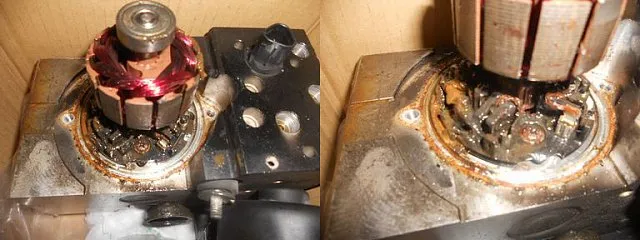 単体でモーターの抵抗を測ったら、かなりずれていたのでキャップを開けるとブレーキオイルが混入してボロボロの状態です。 ABSユニットASSY交換いたしました。