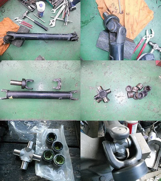 下段写真が新品のユニバーサルジョイントを組んだ状態です。これでまだまだ乗れますよ。(^O^)